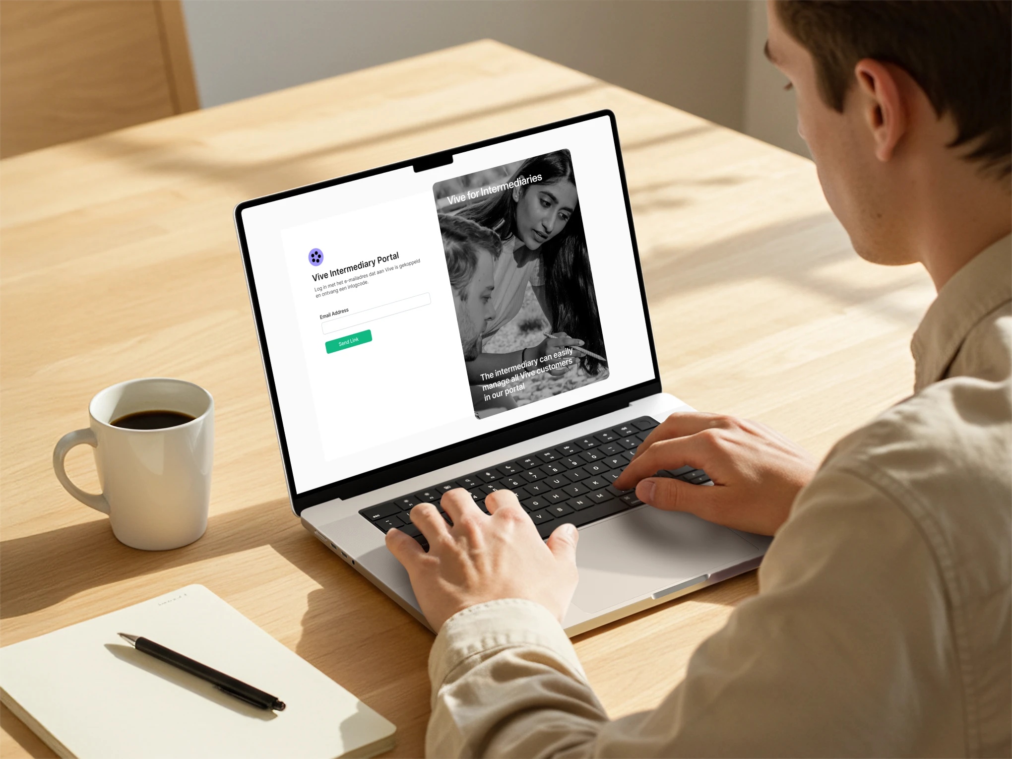Vive offers intermediaries a special partner deal. Through our partner deal, your client receives a discount on our services. You still design the scheme per employer and maintain the full client relationship. You manage the connected client via a simple portal. Vive meanwhile takes care of implementation, compliance, and the employee app.