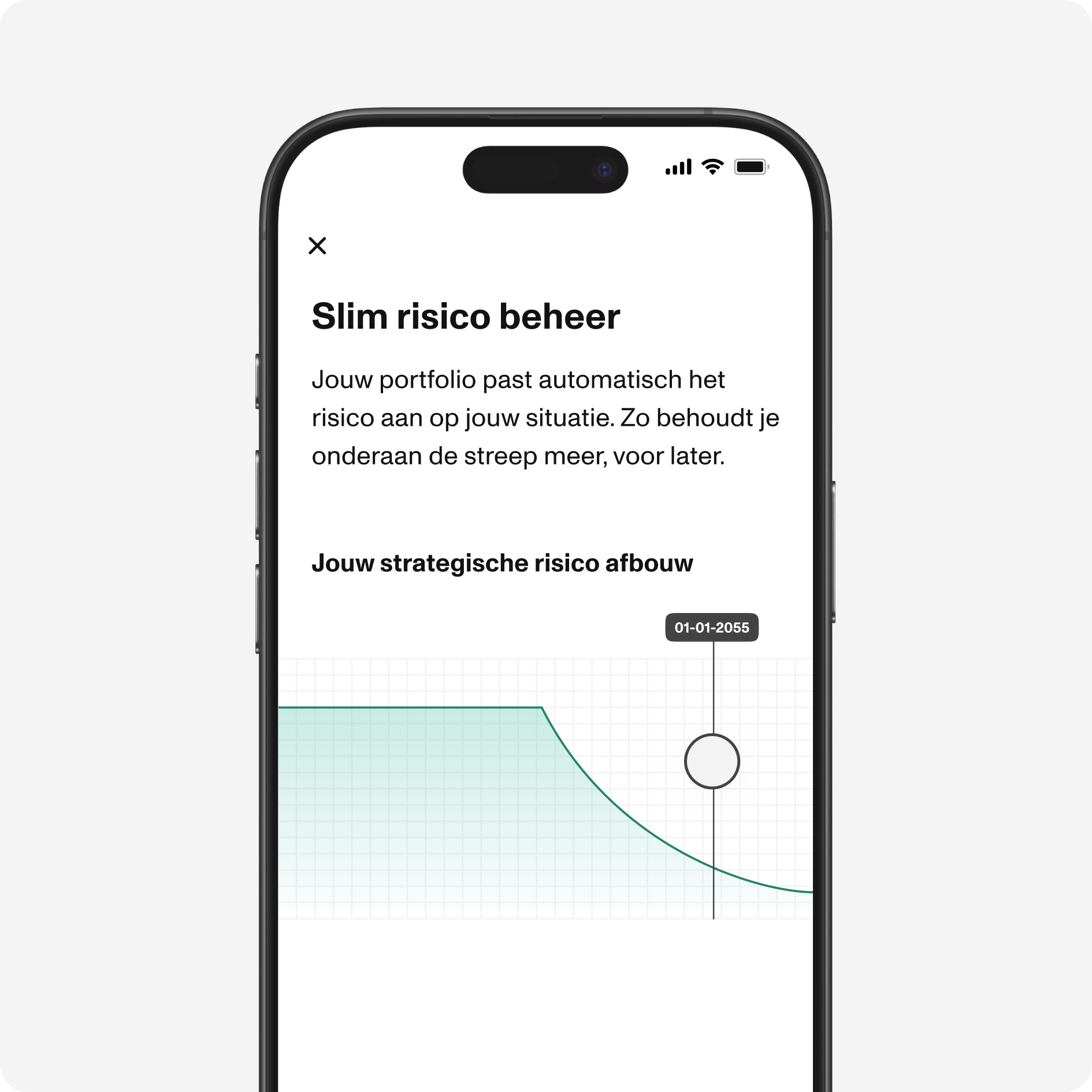 Tegen de einddatum van jouw beleggingsplan wordt het risico automatisch afgebouwd naar een beschermendere mix van beleggingen.